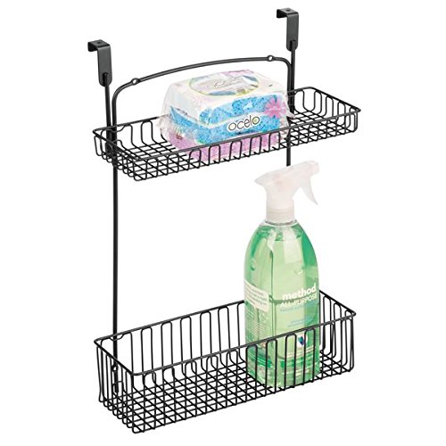Features 2 baskets of 2 different sizes: Bottom basket is deep for larger items like dish soap or cleaning bottles and the top basket is shallow for smaller items like sponges and scrubbers