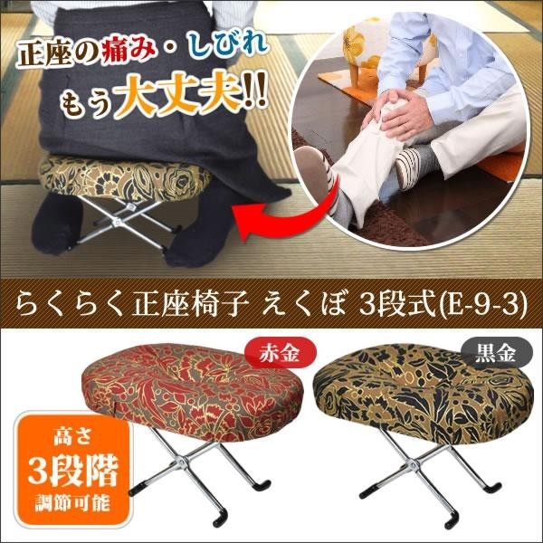 | 高さを3段階に切替でき、お好みの高さで膝への負担を軽減!!座面が大きく中央部にくぼみをつけているので、ゆったり座ることが出来ます。板バネ構造で誰でも簡単に組立・収納が出来ます♪ |