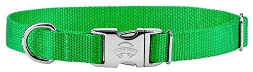Studio : Country Brook Design Publisher : Country Brook Design Binding : Misc. Product Description ountry Brook Design's premium nylon collar is a beautiful, safe, comfortable collar made right here in the U.S.A. These collars are custom made using strong, aluminum side release buckles that feature a brilliant mirror finish. In addition, these nylon collars are made from rugged, durable nylon webbing. Nylon webbing is a heavy-duty yet soft and flexible material with an attractive appearance. Nylon collars are soft and sleek to the touch with a little bit of a sheen. Our nylon collars are available in a wide array of popular colors. The premium nylon collars are also made using top quality, heavy-duty wide-mouthed triglides and heavy welded D-rings. We only use the best hardware. These collars have an aluminum side-release buckles for a beautiful look; wide-mouthed, heavy-duty triglides for easy adjustment; and heavy-welded D-rings for your dog's safety. Country Brook makes all their collars after the order has been placed. However, rest assured as your collar will ship within two business days of receiving payment. 0