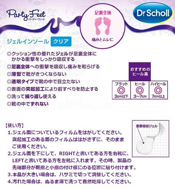 衝撃吸収に優れた透明ジェルが足全体にかかる衝撃をしっかり吸収。疲れ・痛みを緩和します。突起加工を採用しているため前すべりを防止。ピタッと貼るだけで使える粘着タイプです。パンプス、サンダル、ミュール、ブーツにお使いいただけます。 |