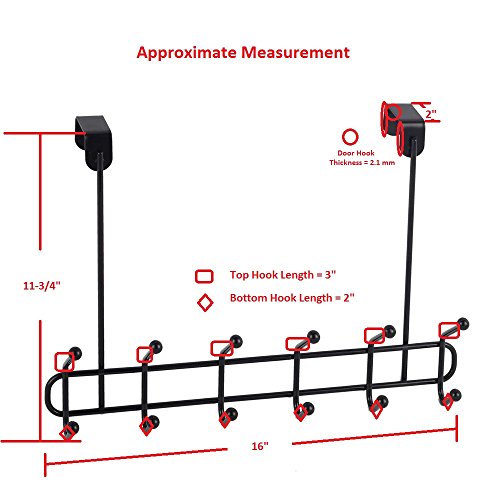 Neat-O Over The Door Hanger 12 Hook Organizer Holder Rack (Black)