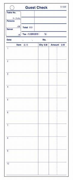 飲食業界には欠かせないお会計票です。英文で書かれていますので、海外からのお客様の多い店舗などにオススメです。