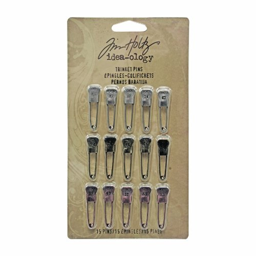 Metal Trinket Pins Stamped with Words and Numbers by Tim Holtz Idea-ology, 15 Pins per Pack, 1-1/4 Inches Each, Antique Finishes, TH92720