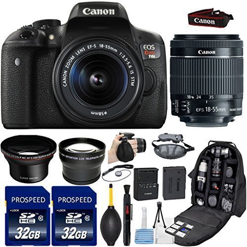 -. Title : Canon EOS Rebel T6i DSLR Camera with 18-55mm IS STM Lens + Kit Includes, 58mm HD Wide Angle Lens + 2.2x Telephoto Lens + 2Pcs 32GB Commander Memory Cards + Backpack Case + Grip Strap + Cleaning Kit