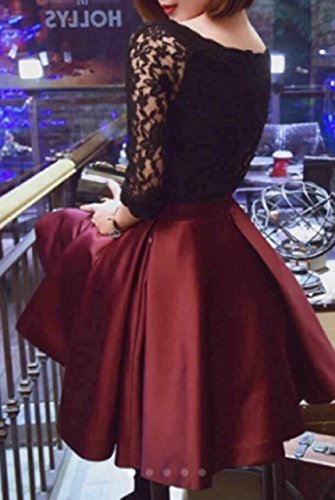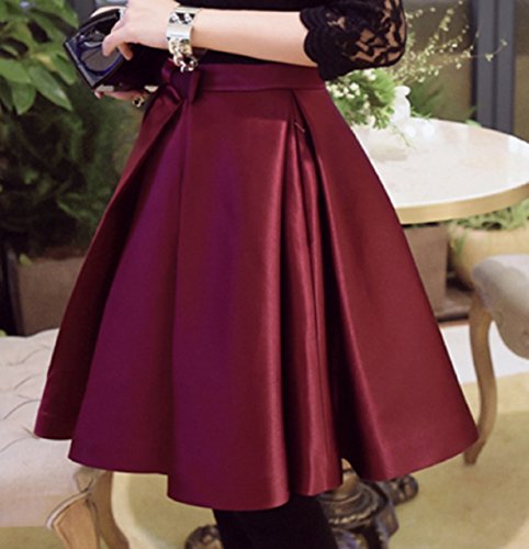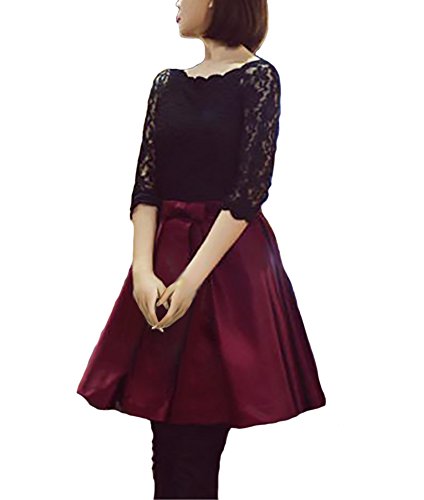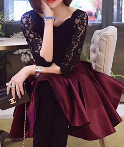 -. Title : (マナムーン)ManaMoon 七分袖 ひざ丈 サテン フレア ドッキング ワンピース パーティー レディース