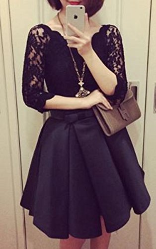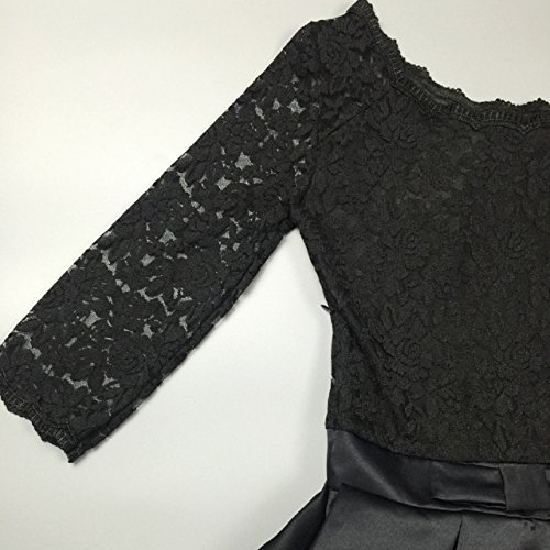 -. Feature : レースとサテンの異素材ワンピースで七分袖、ゴージャスなひざ丈のワンピースです。 / 袖口と首回りがレースのスカラップ型になっていて、大人かわいいオシャレなトップスです。 / 結婚式、二次会、パーティなど 幅広い場面で活躍出来る便利な1枚です。 / ウエストのリボンがアクセントになっており 光沢感とハリのあるサテン地のスカートで、 エレガントに仕上がっています。サイズは M、L、XL   / <Mサイズ > 着丈 約 83cm 胸囲 約 84cm 袖丈25cm ウエスト70cm