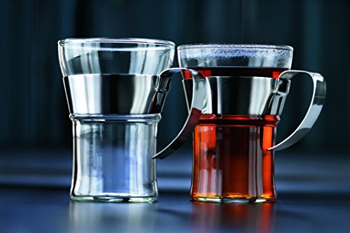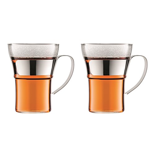 【정규품】 BODUM 《보덤》 ASSAM 티 글래스 스테인레스 핸들 350ml (2 개세트) 4553-16