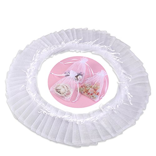 Foxnovo 100 Pack 9x12cm Organza Drawstring Gift Bags, Wedding Favor Bags (White)