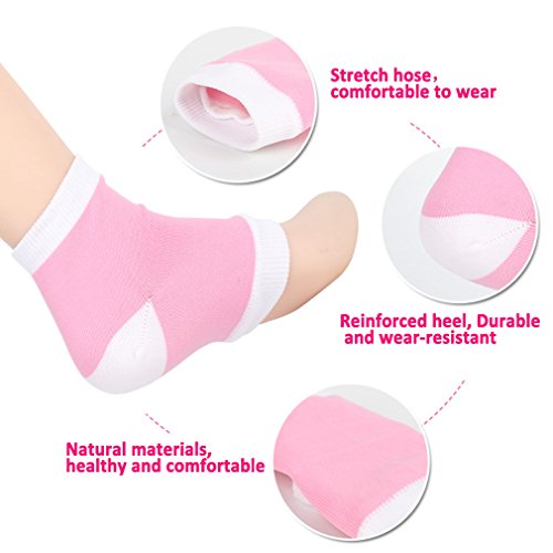 Studio : SuPoo Publisher : SuPoo Binding : Misc. Product Description SuPoo Moisturizing Cracked Heel Socks - 4 Pairs Treat Dry Heels Fast Pain Relief from Cracking Feet with these Gel Heel Protector Pads Get these set of Moisturized Gel Sleeve from SuPoo to repair your dry skin and cracked heels while you sleep. Keep your feet looking soft and fresh and no more embarrasment again with going and walking on barefoot or with any kinds of shoes and sandals. Best Value: 4 Pairs Heel Silicone Gel Socks, Made from Quality Silicone Gel so you can hand wash and reuse these socks as needed. One Size Fits Most - under size 7.5 women, Fabric are made of 80% Nylon, 15% Spandex, Latex-free. Hypoallergenic. Washable, Wash if needed! Best to wear at or during sleep, use as needed. For intense and fast treatment, use with a skin moisturizer It's soft, lightweight and breathable, and the moisturized gel will leave your feet feel fresh and healthy Package Content 4 Pairs x Silicone Gel Heel Sleeve Socks 0
