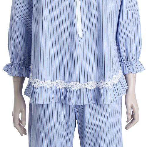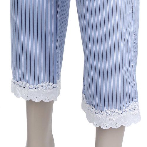 상의와 하의 밑단에 흰색 캐미컬 레이스를 매치하여 더욱 여성스럽습니다.