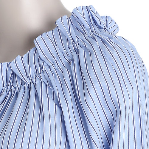 목선은 넓은 보트넥 스타일로, 원단 안에 밴드가 있어 오프숄더로 착용할 수 있습니다.