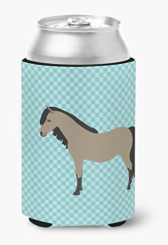 Caroline's Treasures BB8084CC Welsh Pony Horse Blue Check Decorative, Can Hugger, Multicolor