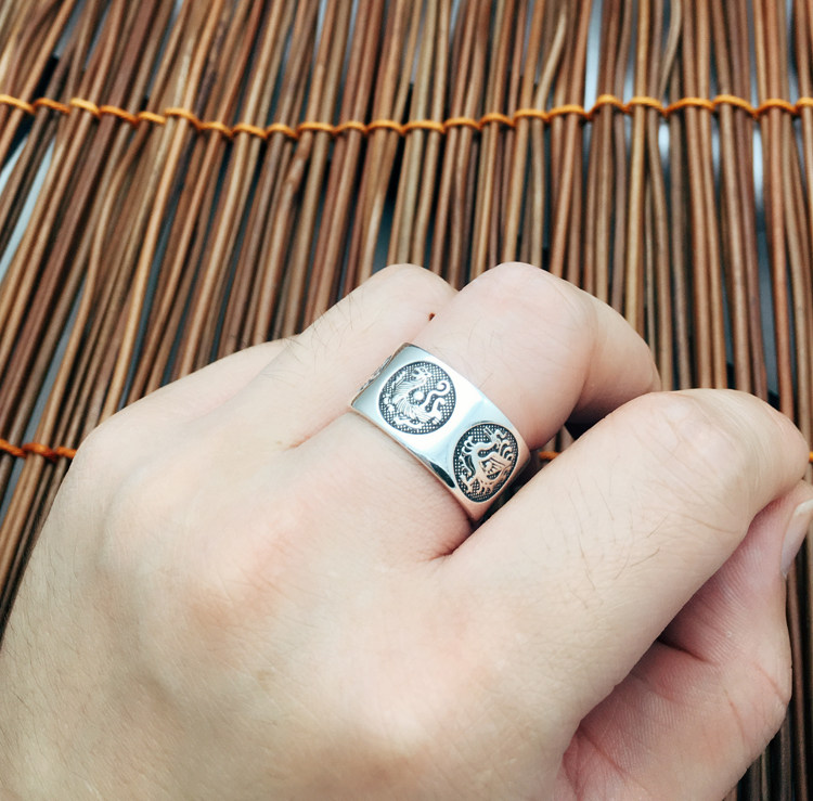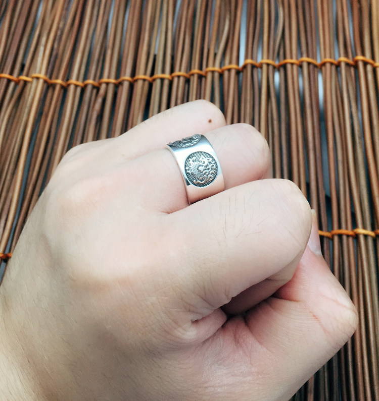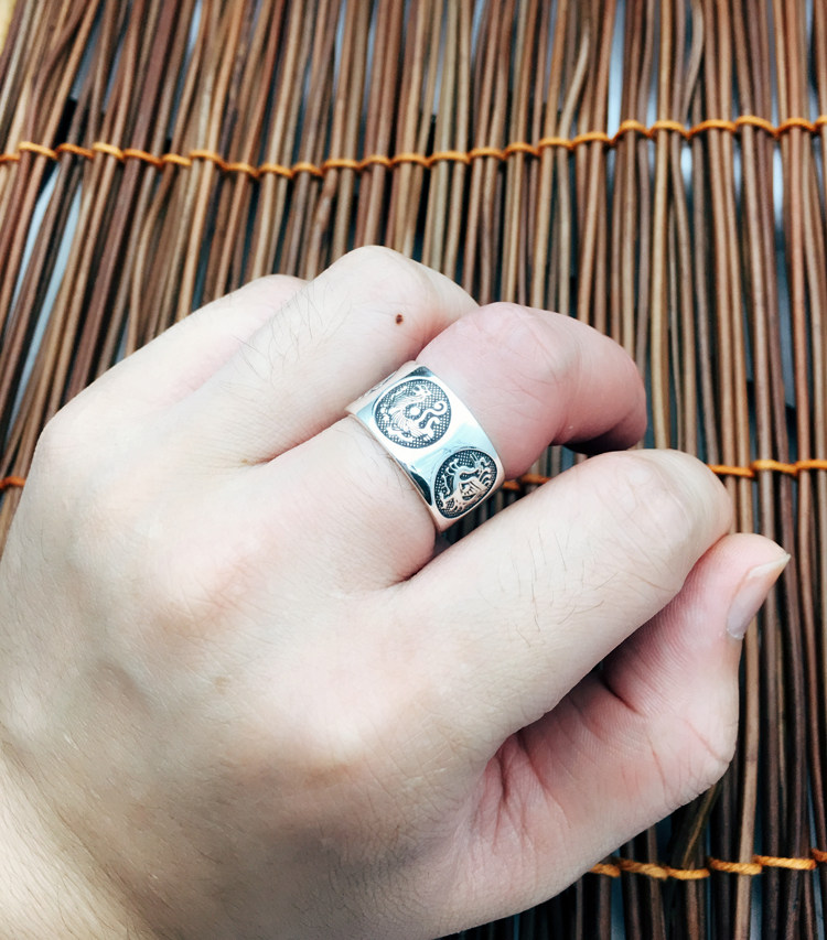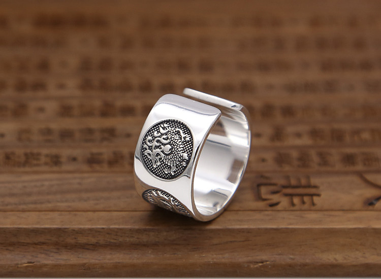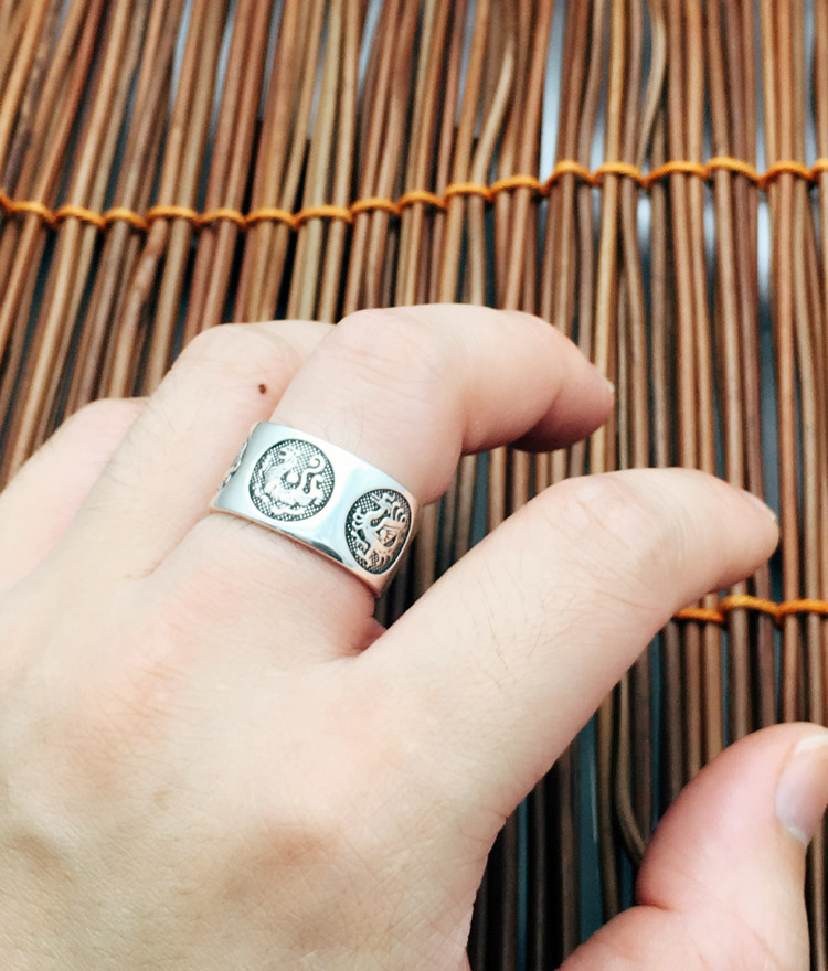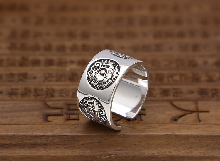 富贵鹿 999纯银男士戒时尚开口足银戒指可调节指环四神兽关节尾戒