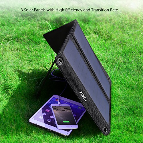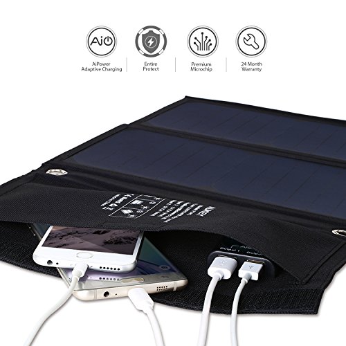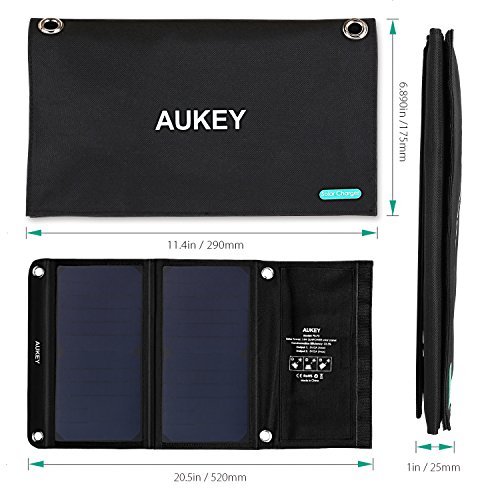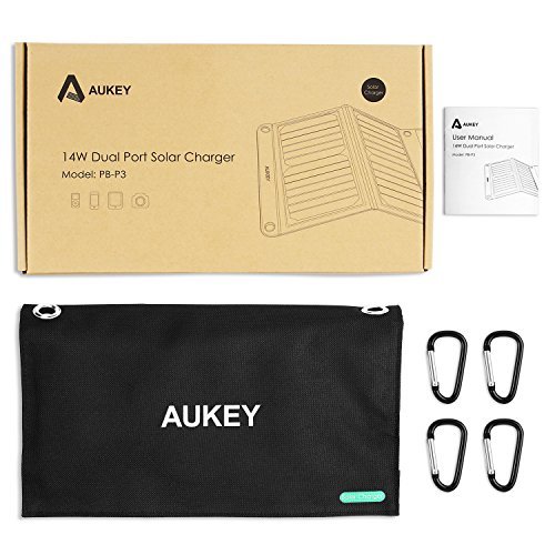 AUKEY Universal 14W Solar Charger with 2 USB Ports and SunPower Solar Panels