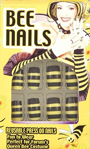 -. Title : Bumble Queen Bee Nails Stick On 12 Black Yellow Halloween Costume Accessory New