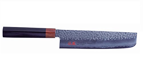 Studio : Suncraft Publisher : Suncraft Product Description Knives in the Senzo Wood Collection are incredibly sharp, have an enduring edge, easily resharpen, are easy to maintain, and are made with VG-10 Damascus Stainless Steel with 33 layers. We achieved the extreme sharpness by selecting a steel for the center core capable of being tempered to a high level of hardness (61 /- 1 HRC) without requiring more expensive processes than workshop roll forging and tempering - Hitachi VG10 No.1. A layer of pure Nickel Silver cladding the core ensures minimum influence on the food being cut and then 15 alternating layers of high carbon and low carbon soft stainless steel provide both final softness (for easy sharpening) and aesthetics (after aqua regia treatment). The "hammer" finish, which is usually done by hand hammering, was replicated by machine pressing. With minor blemishes, this accomplishes the same functionality and artistic look as traditionally hammered knives, but at a much lower cost. The handles are made with a cocobolo collar and an ebony black pakkawood grip - a laminated hard wood that will last longer, and is more hygienic, than traditional hardwood handles. Use this knife to chop, slice, dice, and mince any vegetable or fruit. Very sharp edge will let the knife cut through effortlessly. VG-10 Damascus Stainless Steel, 33 layers, Blade length: 180mm (7.09in). Hand wash only. Made in Japan. 0