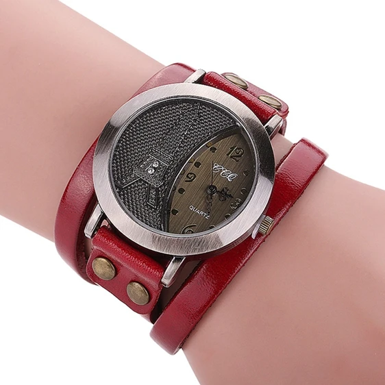 | [해외] CCQ 브랜드 빈티지 타워 시계 2017 가죽 팔찌 시계 캐주얼 여성 손목 쿼츠 시계 Relogio Feminino |