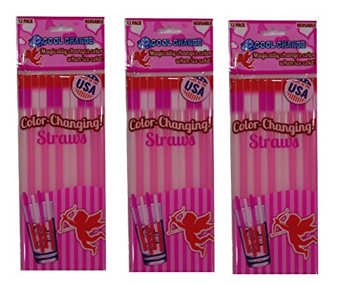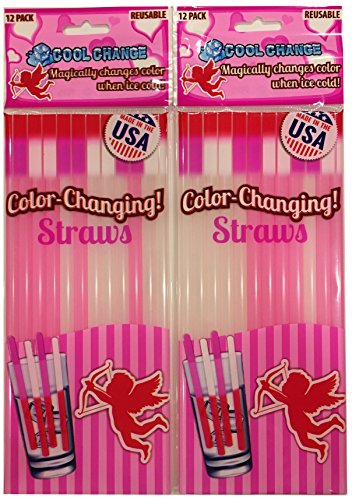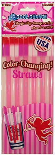 Valentines Day Cool Change Color Changing Drinking Straws - 1 package of 12 Fun Valentine Color Change Reusable Straws (off white changes to med pink/light red - pink changes to hot pink). Dip into your favorite ice cold beverage or frozen treat and watch the straw magically change color! PLEASE NOTE: Color change will vary depending on temperature, lighting, and perception of color. Color change is due to temperature change. The warmer it is... the lighter the color. The colder it is... the bolder the color.Feature