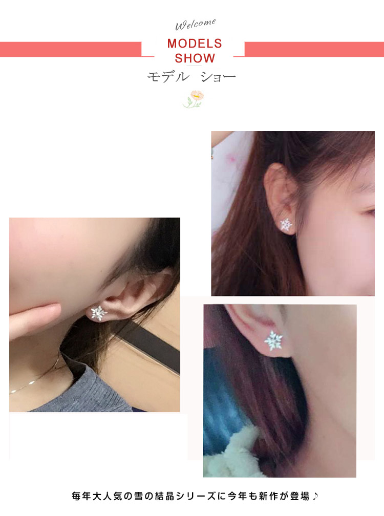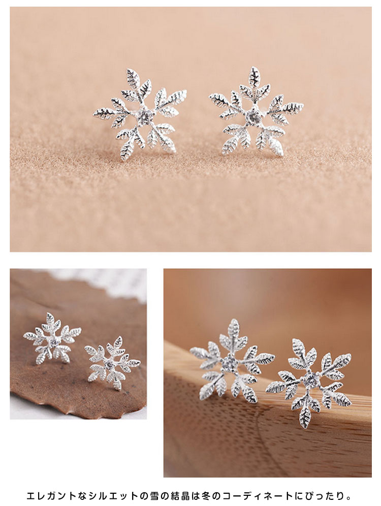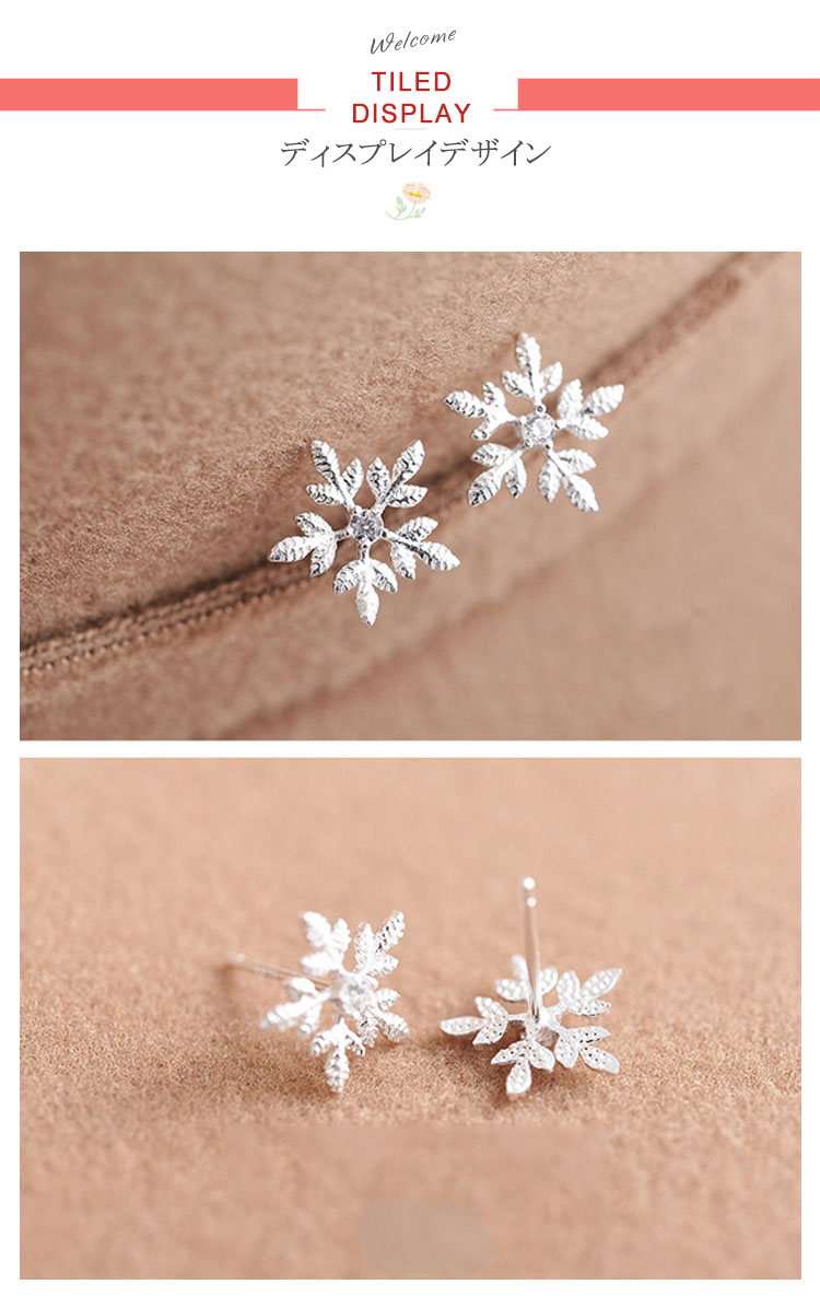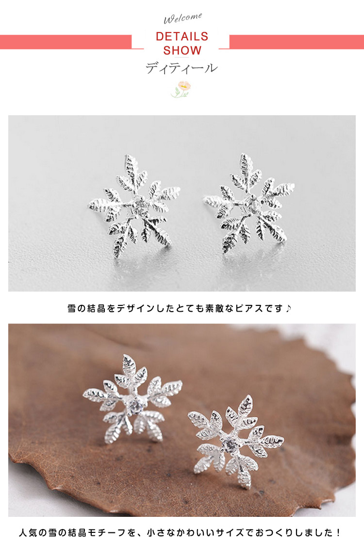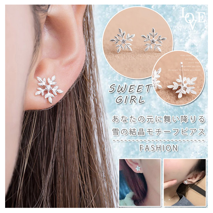 | あなたの元に舞い降りる。雪の結晶モチーフピアス。毎年大人気の雪の結晶シリーズに今年も新作が登場♪ エレガントなシルエットの雪の結晶は冬のコーディネートにぴったり。ちらちらと舞い降りる雪のように、耳元を可憐に彩ります。 | |