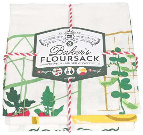 Now Designs Bakers Floursacks, Set of Three, Get Growing