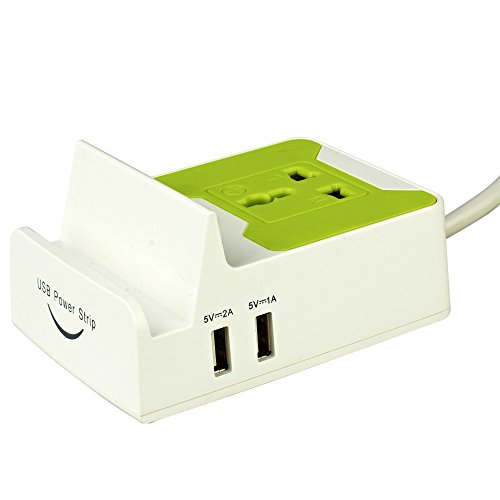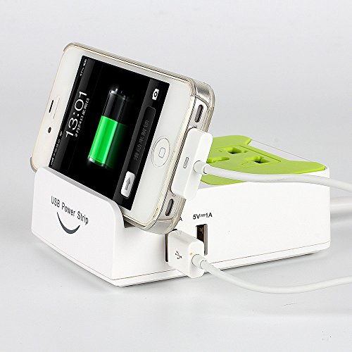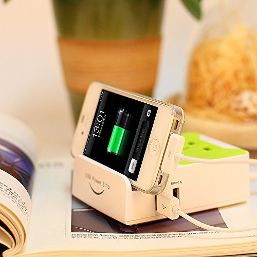 Tiwkich Power Desktop Charging Station USB Wall Charger Surge Protector with 1 Universal 3pin AC Surge Protected Outlets, Dual USB Charging Ports and Built-in Slot Holder With ON/OFF Switch for Apple iPhone 6, 5s 4s Ipad 2,3, mini Samsung Galaxy,Cellphone Tablet PC US Plug