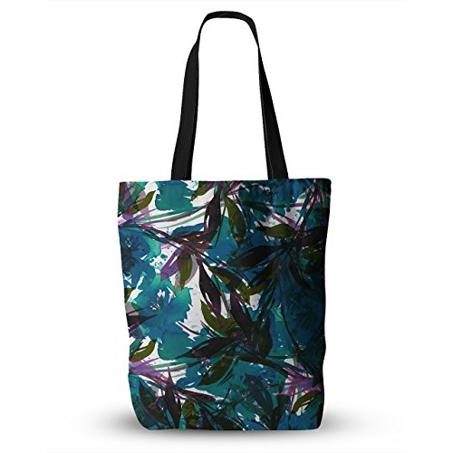 KESS InHouse Ebi Emporium "Floral Fiesta Teal" Watercolor Pattern Everything Tote Bag, 18" x 18", Multicolor