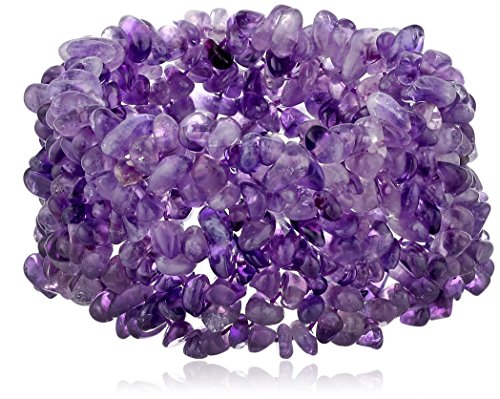 Add a splash of color to your wrist with this stretchy purple amethyst chip bracelet. Bunches of polished amethyst chip beads are woven together on purple stretch cord to create this comfortable and easy-to-wear design. The mixed purple shades are beautiful and vibrant together. Amethyst is February's birthstone, and a gorgeous gemstone for any season.