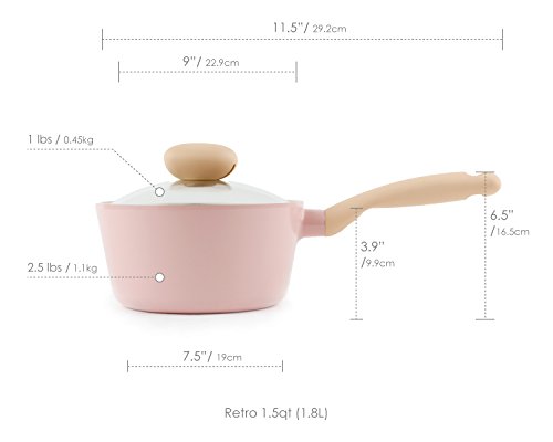 Neoflam Retro 1.5qt Covered Cast Aluminum Saucepan with Soft-Touch Grip and Ecolon Nonstick Coating