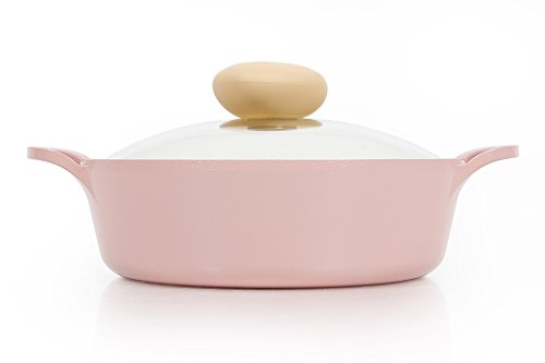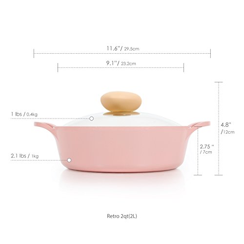 Neoflam Retro 2QT Ceramic Nonstick Low Stockpot w/ Glass Lid, Pink