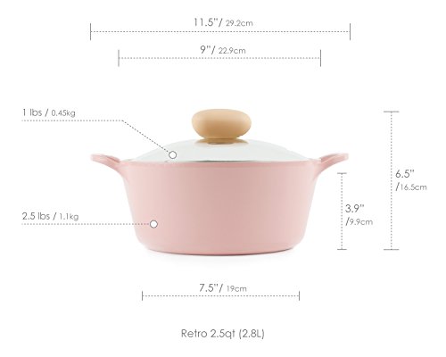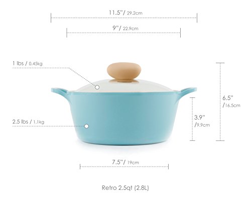 Neoflam Retro 2qt Covered Cast Aluminum Low Stockpot with Ecolon Non-Stick Coating