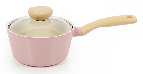 Neoflam Retro 1.5QT Ceramic Nonstick Saucepan w/ Glass Lid , Pink