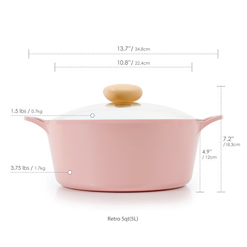 Neoflam Retro 5QT Ceramic Nonstick Stockpot w/ Glass Lid, Pink