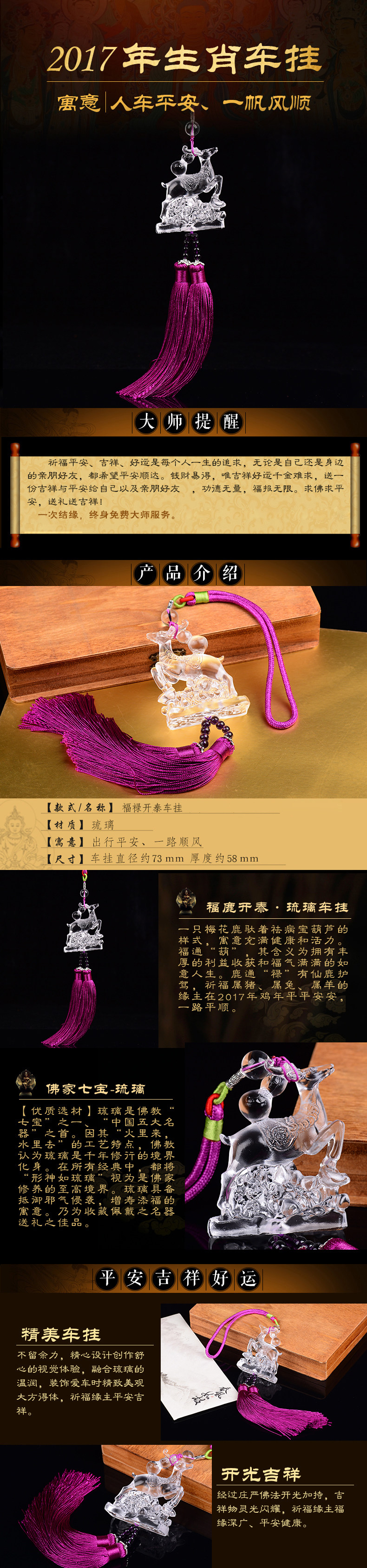 开光汽车挂件饰品2017年属猪兔羊平安车挂福鹿开泰琉璃玉汽车挂饰