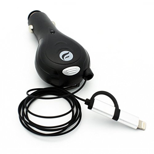 -. Feature : High Quality Powerful Retractable Car Charger Extra USB Port. Easily Retracts The Cord At The Touch Of A Button. / High performance, compact device. Powerful 3.1Amp output (2Amp from USB Port, 1.1Amp from Retractable Cable). / With its built-in adapter, you can use this charger for iPhones, iPads and Android Phones, Tablets. / Smart IC chip recognizes a fully charged battery and automatically switches to a saver mode. / Standard Cigarette Lighter plug fits most automobiles, RVs, boats. Convenient compact size with tangle-free wire to use with ease. - Intelligent Chip circuit prevents overcharging. No more tangles or cable clutters in your car. (NO Extra USB Cable included).