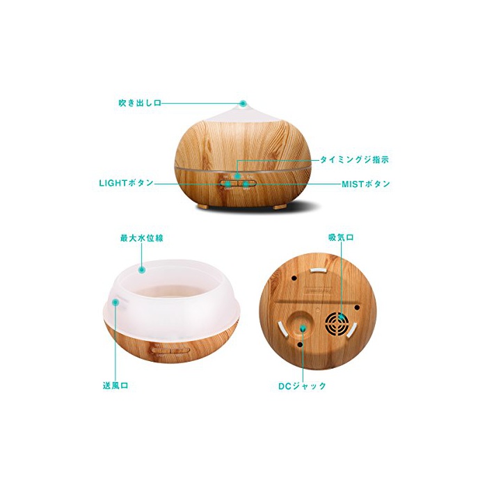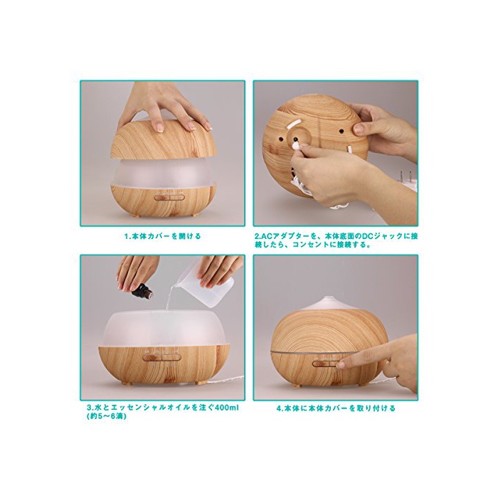원본상품명: Tenswall アロマディフュザ 超音波式 加器 400ml大容量 7色換LED搭載 空焚き防止機能搭載 アロマ加器 時間設定 ムドランプ 木目調