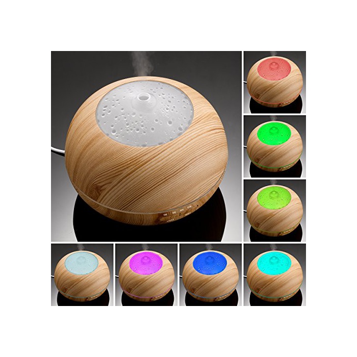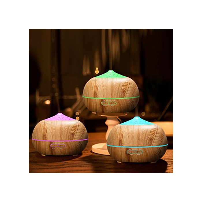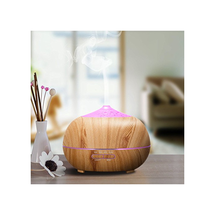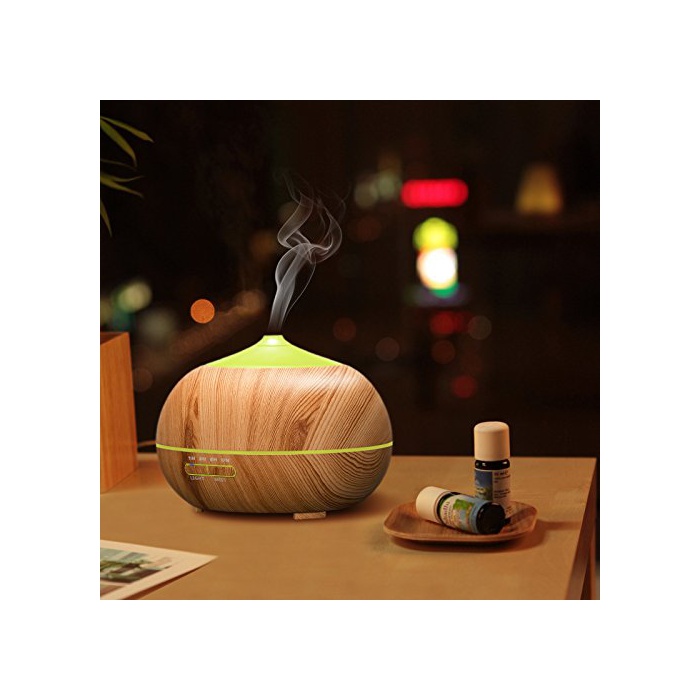 Tenswall 아로마 diffuser 초음파식 가습기 400ml대 용량 7 색변환LED탑재공 지펴 방지 기능 탑재 아로마 가습기 시간 설정 무드 램프 우드 그레인
