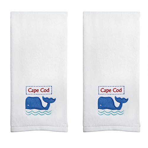 Summer Style White Cotton Embroidered Cape Code Themed Guest Hand Towels 2-Pack, 16-Inch x 25-Inch (Cape Cod Whale)
