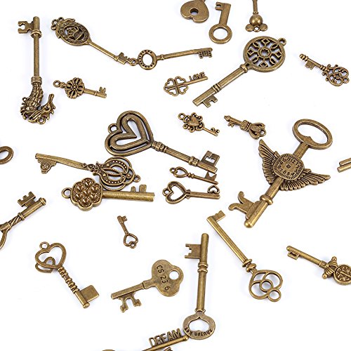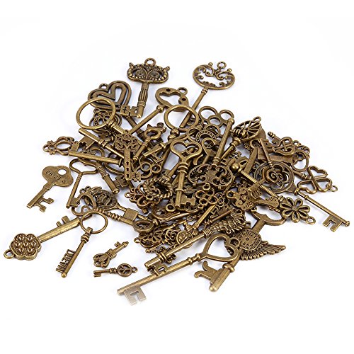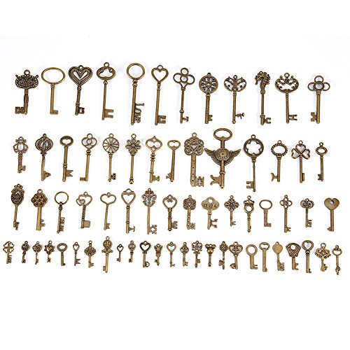 69pcs Assorted Antique Vintage Old Look Large Bronze Skeleton Keys Lot Charm Pendant Fancy Heart Bow Jewelry