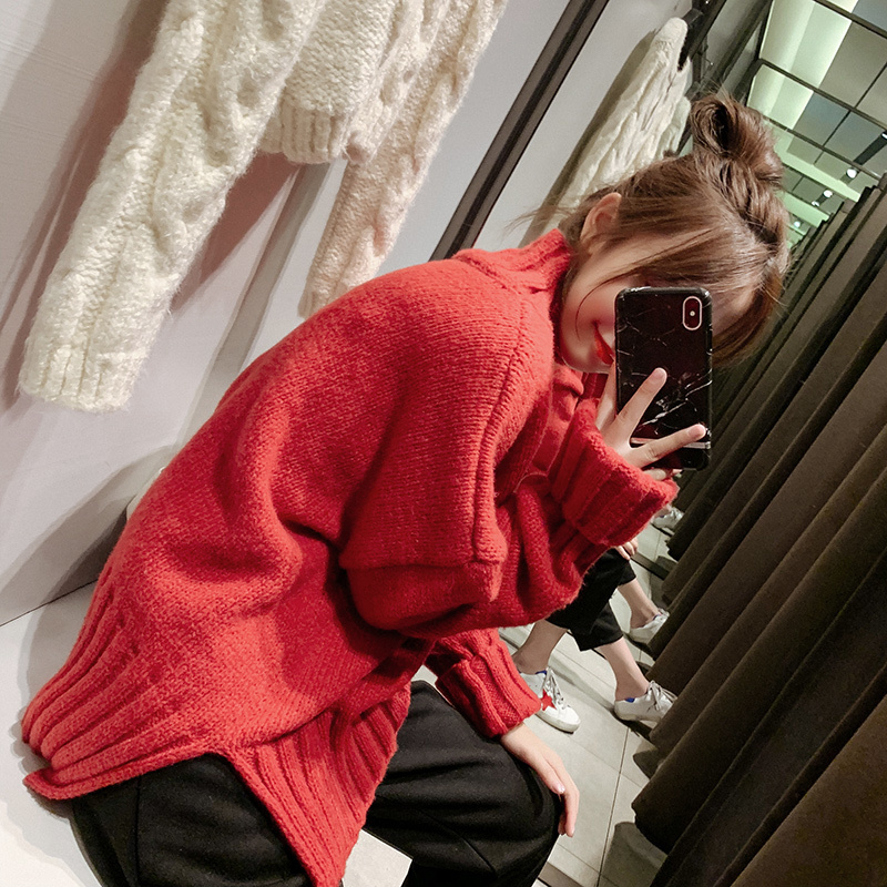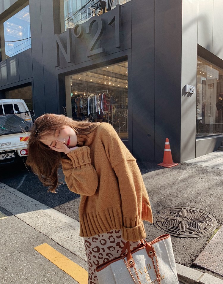 首元まですっぽり覆う厚手ニットが可愛いだけじゃなく、暖かさも抜群です◎