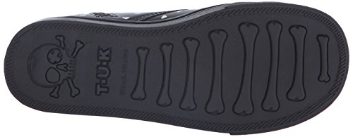 Product Description You'll be feline good in these comfy kitty combat boots by T.U.K. original footwear. Black and cream heart print faux leather on a rubber sole. 0