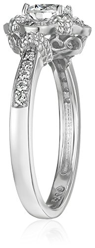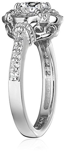 -. Title : Platinum-Plated Sterling Silver Swarovski Zirconia Antique Frame Halo Ring (1 cttw)