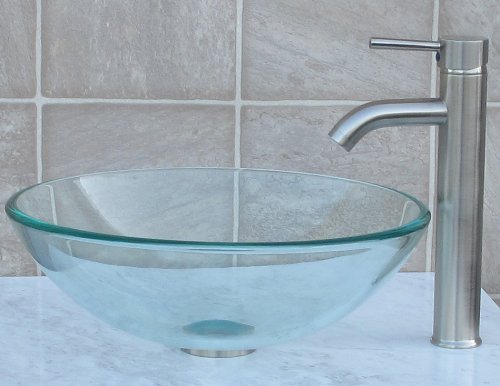 Bathroom glass Glass Vessel Sink & Brushed nickel Faucet Combo & brushed nickel Pop Up Drain Mounting Ring (R12N3)