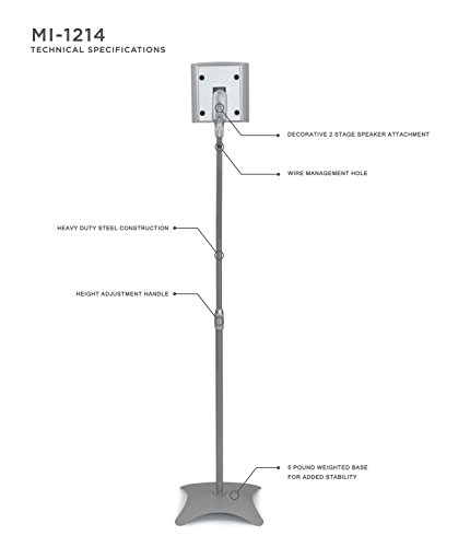-. Title : Mount-It! MI-1214S Speaker Stands for Home Theater 5.1 Channel Surround Sound System Satellite Speaker Stands Mounts, Rear and Front, 2 Pairs, 10 lb Capacity, Silver