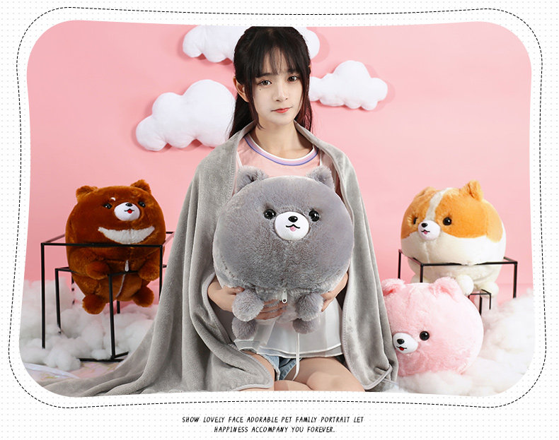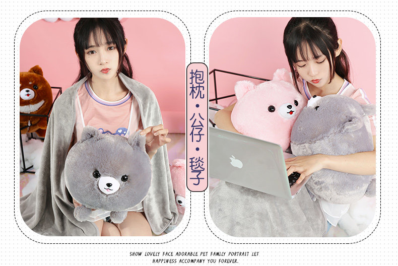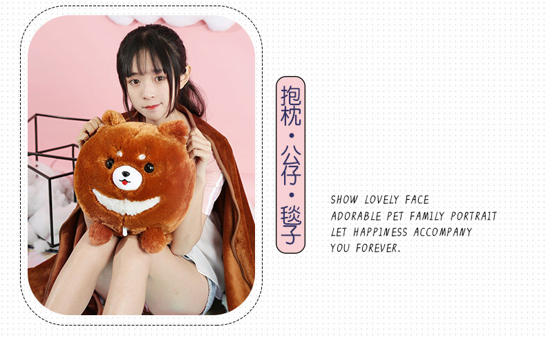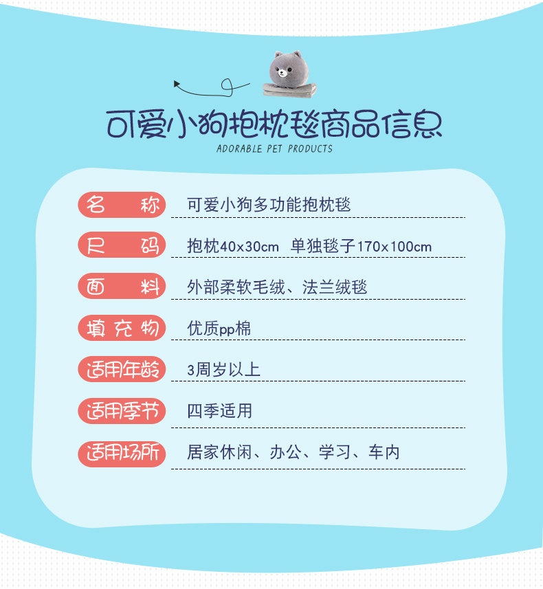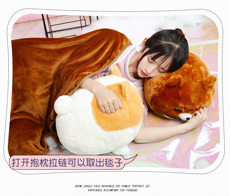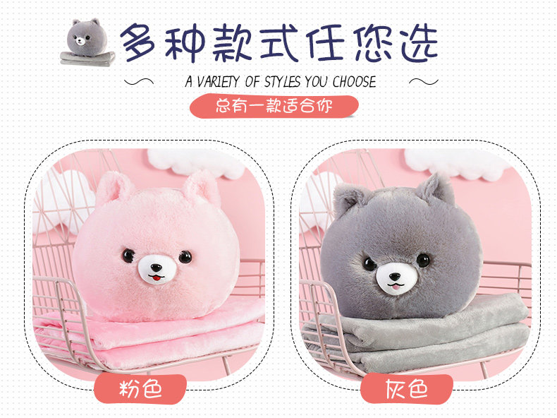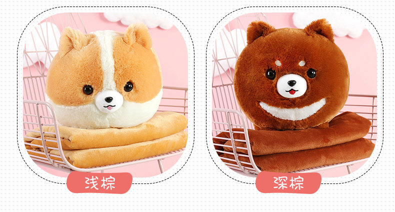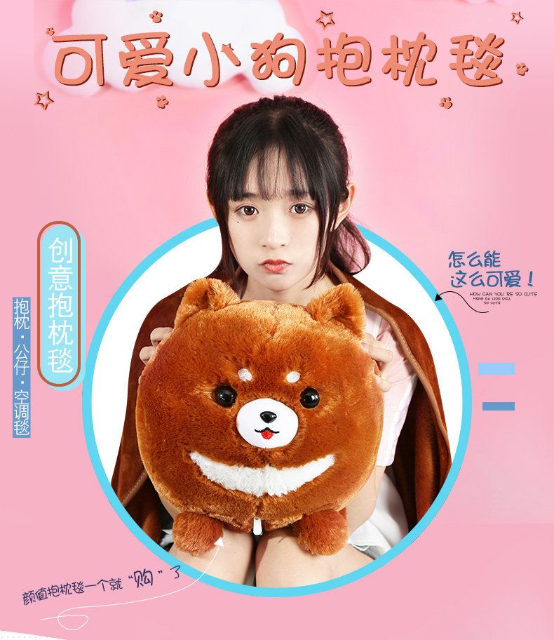 󰄬狗狗可爱办公室抱枕被子两用靠垫被珊瑚绒车用被午睡枕头靠枕毯子