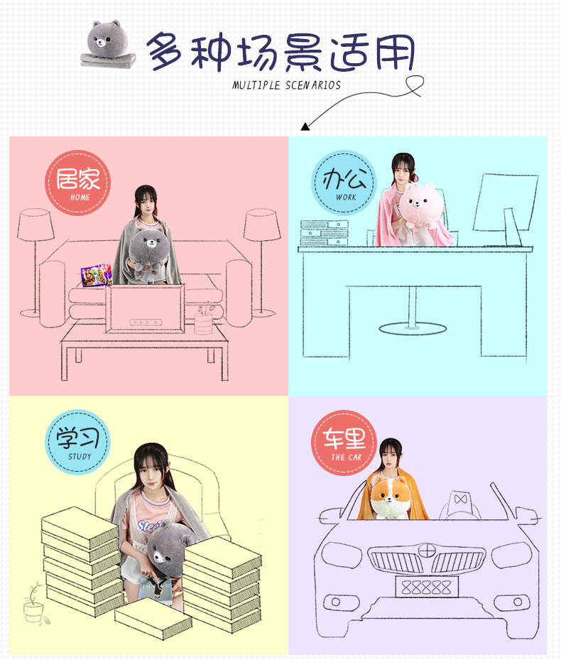 Size: pillow 30X40cm, blanket 100x170cm