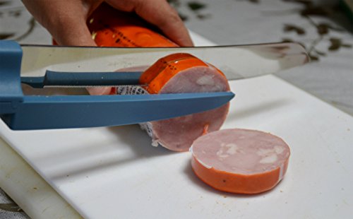 빵이나 햄 등의 폭을 균등하게 가지런히 잘라지는 가이드가 붙은 빵 잘라 부엌칼입니다.빵뿐만 아니라 야채나 햄 등의 조리에 적합하게 있습니다. 세세한인에 자르는 단면도 예쁩니다. ○메이커:관겐지 칼날 주식회사*사용 방법 1.슬라이드 adjuster의 나사를 느슨하게 해 좋아하는폭에 조절하고 나서 고정해 하십시오. 2.가이드를 식품에 첨부하고, 칼을 전후에 작동하면서(도) 가이드의 아래쪽이 도마에 접촉할 때까지 잘라 주십시오. 3.잘라 남긴 부분은,칼의 끝부를 사용해 끌어 잘라 해 하십시오.*사용상의 주의골 딸린 어육과 냉동 식품으로는 사용 하지 마십시오.냉동 식품은,완전히 해동하고 나서 잘라 주십시오.식품을 자르는 경우에는,칼을 전후에 슬라이드 하게 해 잘라 주십시오.《고》더거나 횡방면으로 무력한 힘을 연관시키 라고(면) 위험하만인지,칼날을 파손할 우려가 있습니다.가이드를 빼면,보통의 부엌칼과 마찬가지로 가는 것 를 할 수 있습니다.칼의 등의 부분으로 손가락이나 손을 두어 애써 사용되는 경우에는,마른 천 나와도 좋은 닦아 주십시오.