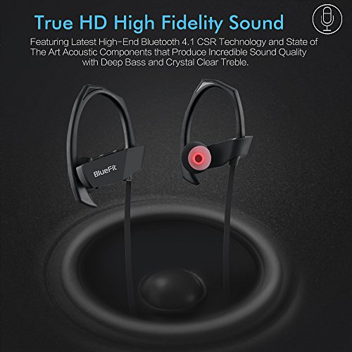 Bluetooth Earbuds, BlueFit M1 Wireless Waterproof Headphones Ear Buds Earphones Headset with Mic for Running Sport, Noise Cancelling