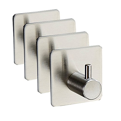 Peicees Stainless Steel Towel Wall Hook 3M Self Adhesive Bathroom Coat Hanger 4 Pcs