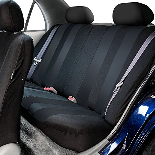 Ride in style with our boldest design yet. The eyecatching thick stripes of color are sure to catch attention. Comes in a variety of colors to match any interior. Our high quality fabric is backed by 3mm of foam padding to disperse heat and keep you cool and comfortable, even in the hottest temperatures. This full set includes seat and headrest covers four (4) bucket seats , one (1) rear split bench, 7 headrests covers and Steering Wheel Cover w. Seat Belt PadsFeature