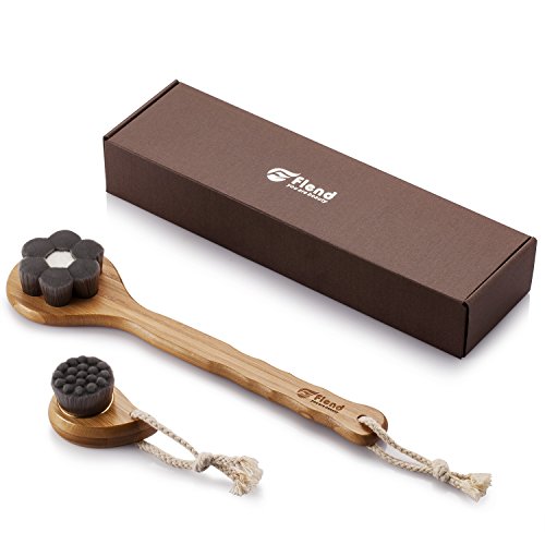 -. Title : Flend Soft Charcoal Fibre Bath Brush+Facial Cleasing Brush Long Bamboo Handle Massage Brush Exfoliating Skin Care (Black Flower Shape)